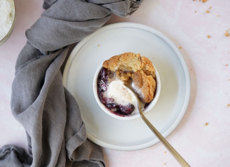 Crafting a cherry cobbler is a breeze – all you need is fresh ripe cherries (I prefer fresh over frozen), which get topped with a buttery biscuit-like dough that will draw you in like a warm hug. Bake until golden and bubbly for a dessert that’s as easy to make as it is delicious.