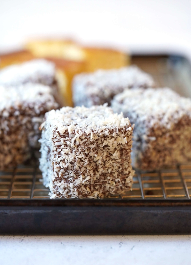 If you’ve never had a lamington, allow me to introduce you to one of Australia’s most beloved desserts. A classic lamington is made from squares of light vanilla sponge cake, dipped in a rich chocolate coating, and rolled in finely shredded coconut. Simple? Yes. Swoon-worthy? Absolutely. Made with three of my favorite things—sponge, chocolate, and coconut—it’s no surprise that lamingtons have quickly become a personal favorite despite never traveling to Australia.