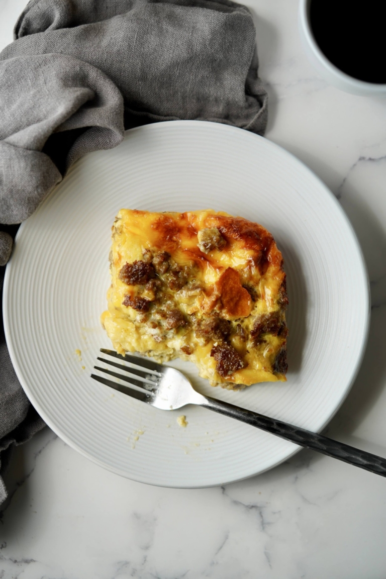 One of the biggest perks of a dish like this? It stretches ingredients, especially eggs, which continue to have sky-high prices these days. Despite the recipe calling for half a dozen eggs, this casserole easily serves 6-8 people. That’s serious breakfast math in your favor. And if turkey sausage and cheddar aren’t your thing, no problem. Swap in crumbled bacon or plant-based sausage, use Swiss, smoked mozzarella, or pepper jack, or add in extras like sautéed spinach, sun-dried tomatoes, mushrooms, or sweet roasted red peppers.