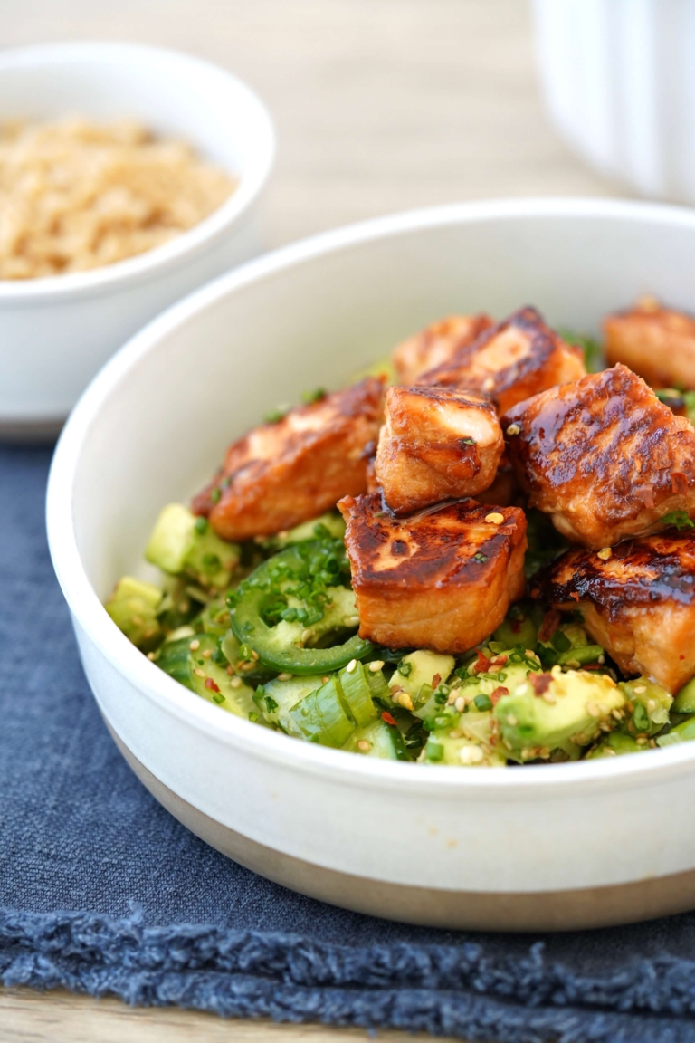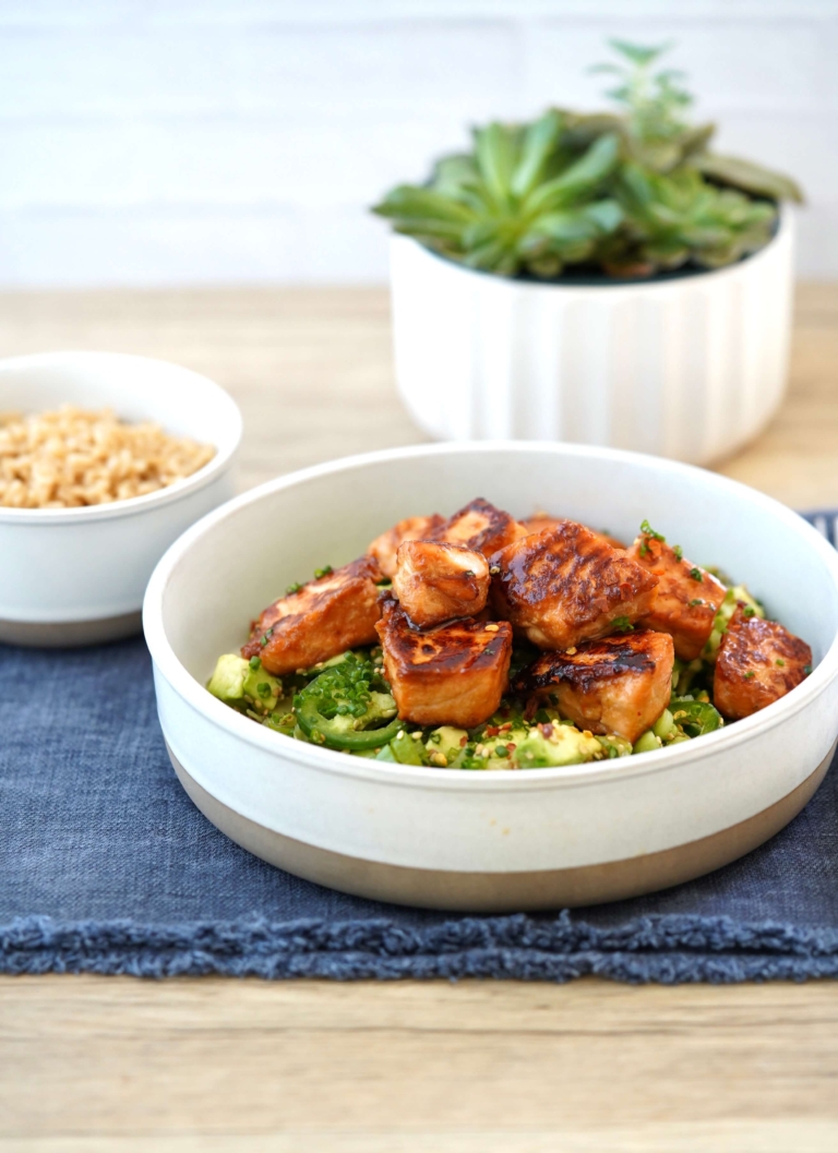 What makes this bowl perfect for a busy lifestyle is the speed at which it comes together. Unlike whole salmon fillets that take longer to cook, this recipe calls for bite-sized salmon pieces that sear in just a few minutes. Paired with prepped grains like rice or quinoa and fresh toppings, this dish goes from kitchen to table in no time—ideal for weeknight dinners, meal prepping ahead of a hectic week, or an easy meal on a hot summer night.
