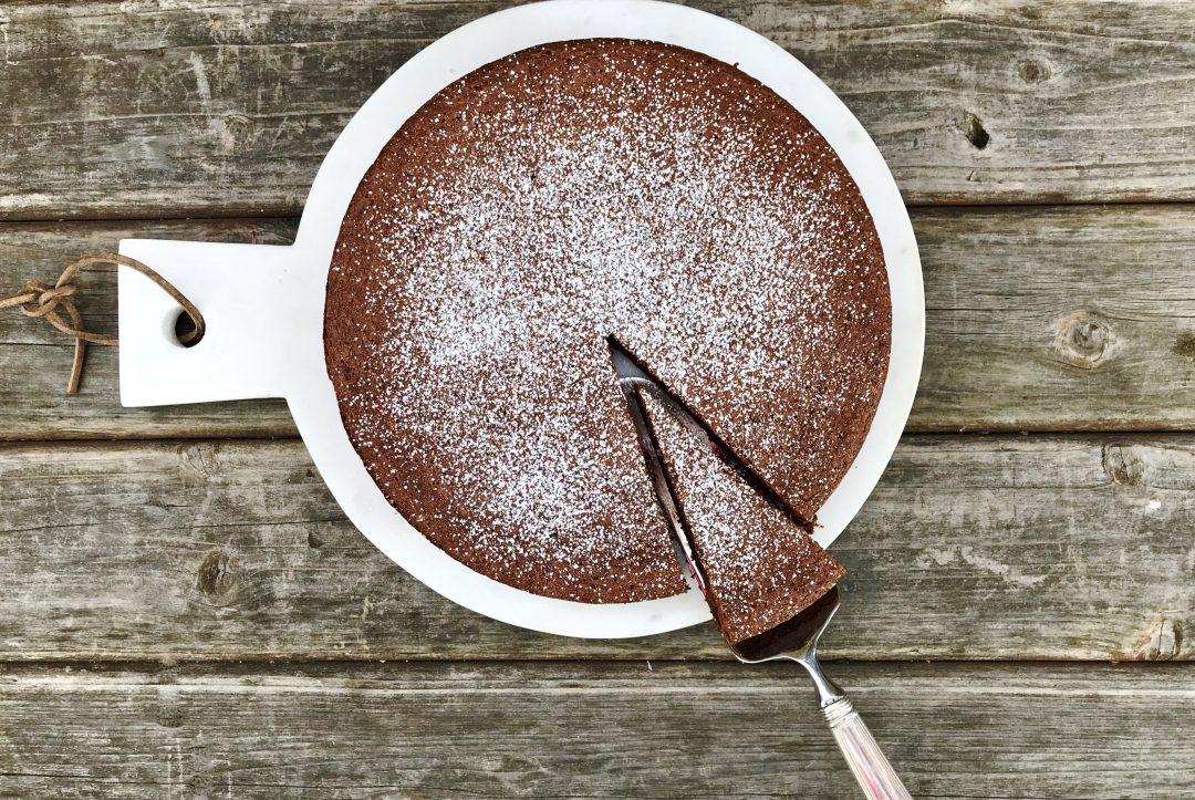 This recipe uses finely ground toasted almonds, which gives it a wonderful subtle nutty flavor to complement the rich chocolate.  The whipped egg whites lighten this irresistible cake even more. The airiness of the cake makes for the perfect end to a great meal without being too overwhelming and heavy. The baking process here is a bit involved, but slowly reducing the oven temperature allows for nice even cooking to help achieve the perfect fluffy cake texture.