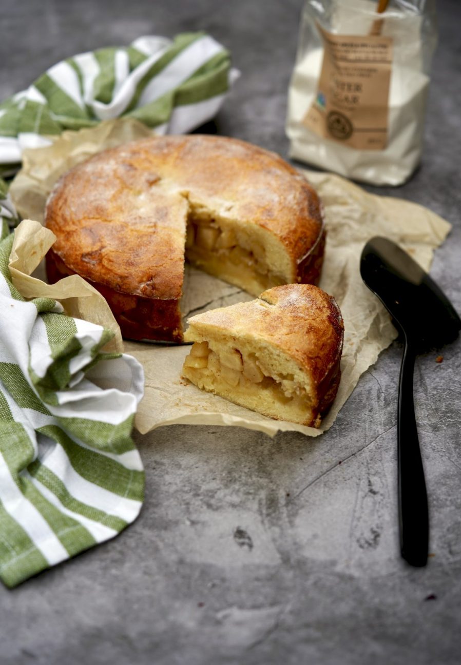 - Allow the apple cake to cool completely. Once cool, dust with the remaining caster sugar, slice and serve with our without homemade whipped cream.