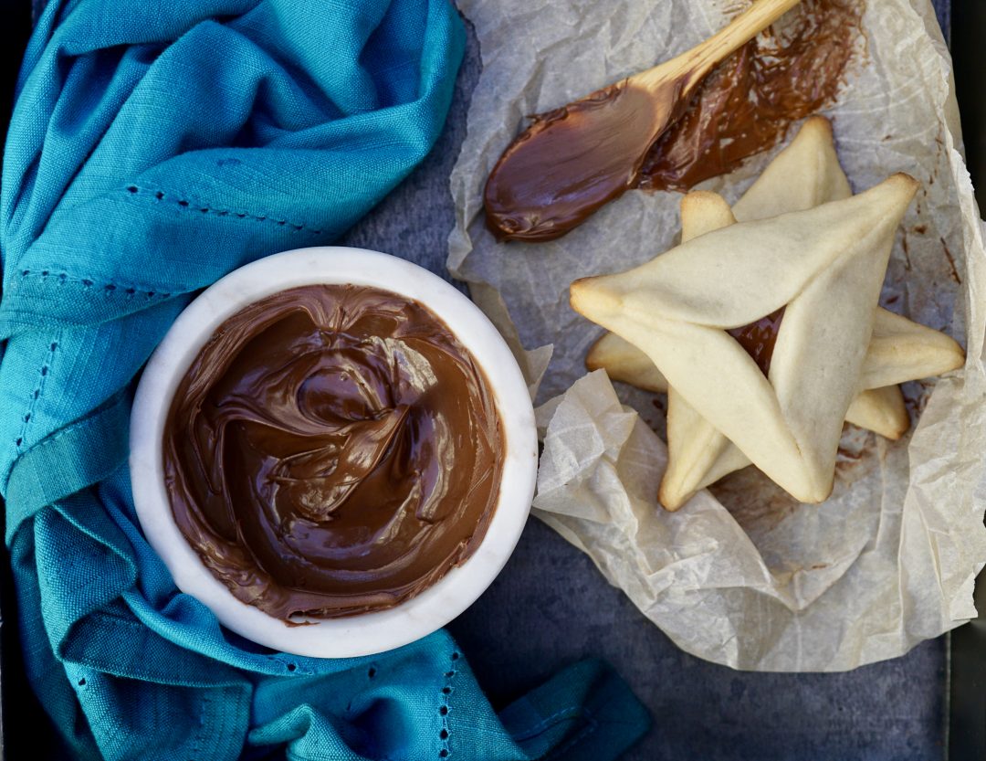 History aside, Hamantaschen are the beloved triangular-shaped buttery cookies filled traditionally with poppy seed, apricot, or raspberry filling. But filling-wise, skies the limit and almost anything you can imagine works in this cookie. For my kids, it’s Nutella, creamy chocolate-hazelnut filling, that created the perfect balance between sweet filling and buttery cookie. As I’ve blogged about before, that balance (within the dessert world) is critical to me.